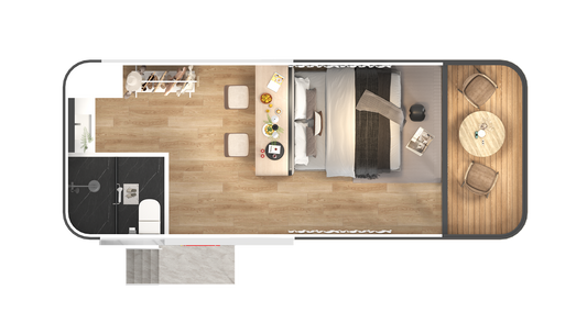 Casa móvil de lujo con forma de cápsula espacial, cama de hotel, contenedor modular prefabricado, habitación pequeña tipo cápsula con cocina y baño (PX3)